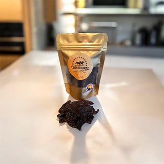 I saw these in a candle shop in OCC, and bought them on a whim. My dog could not get enough of them, so I envision they will be on our shopping list for a long while. Plus, the folks at Twin Hounds are SUPER FRIENDLY, so knowing I am buying from a local place with great folks is a definite bonus.